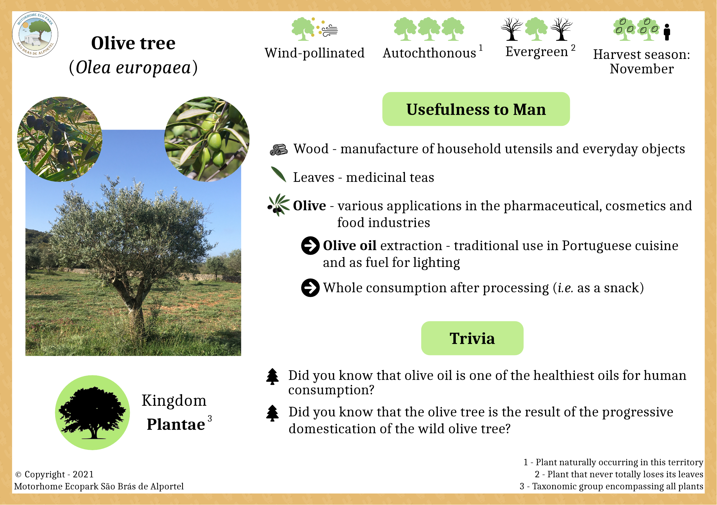 The olive tree is the result of the progressive domestication of the wild olive tree (Olea europea var. sylvestris).