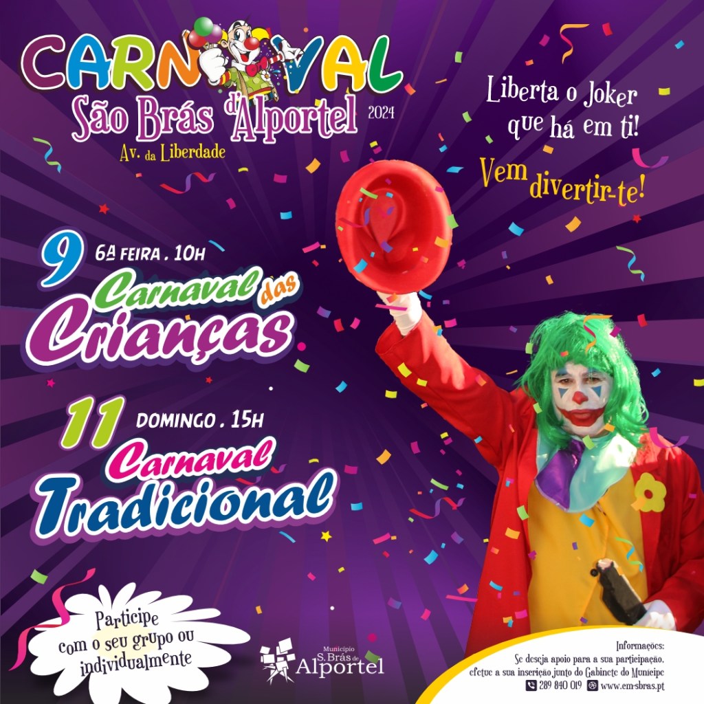 Prepara o teu disfarce de palhaço e junta-te às festividades do Carnaval da próxima semana! Passe o Carnaval em ambas as cidades de São Brás de Alportel e Loulé.