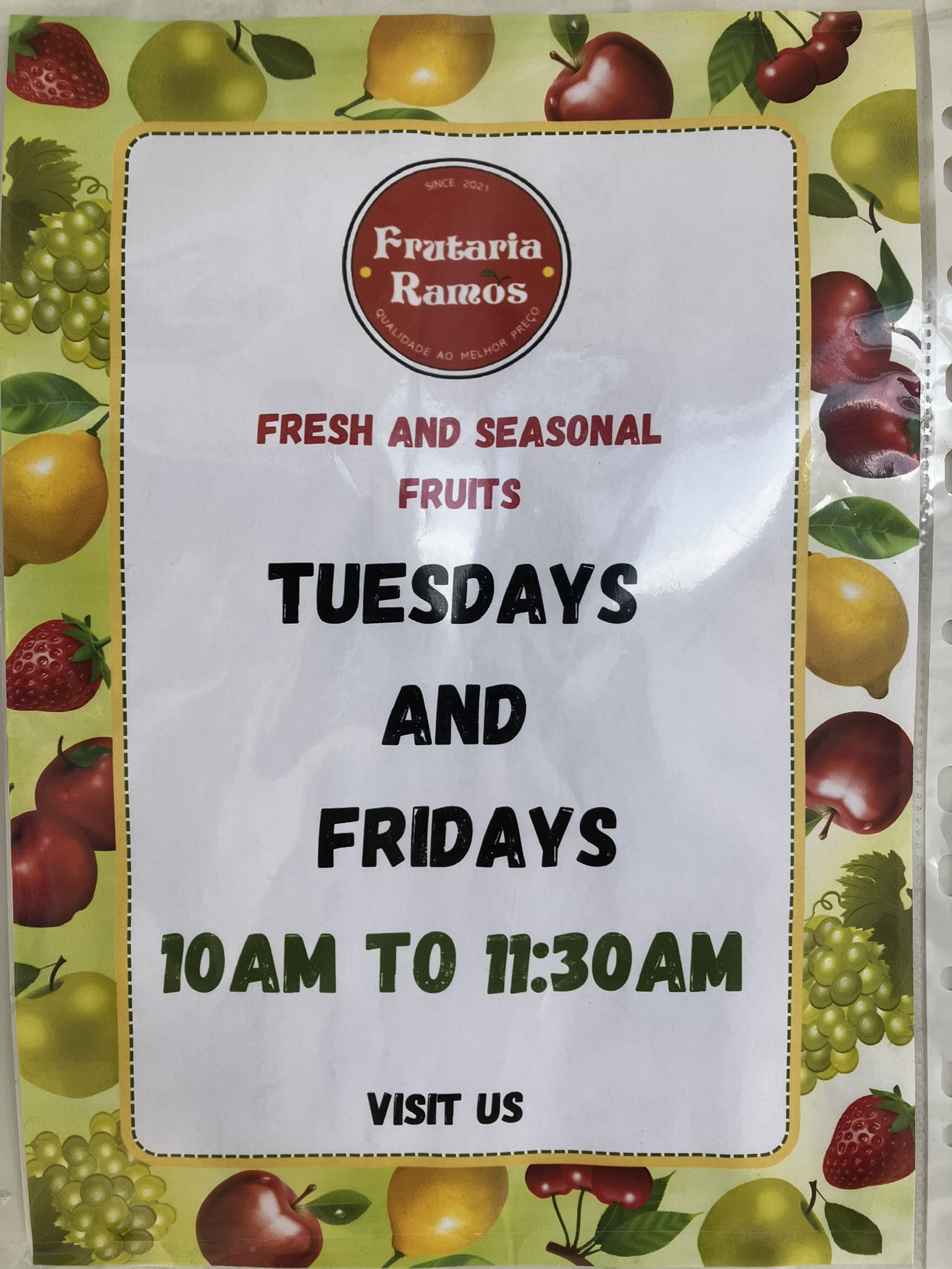 De wekelijkse fruitmarkt in het Ecopark heeft een grote verscheidenheid aan fruit van de plaatselijke producent Frutaria Ramos. Bekijk hun verse en sappige fruit elke dinsdag en vrijdag.